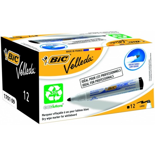BIC Whiteboard Velleda ECOlutions 1701. Kiekis pakuotėje: 12 vnt, Rašiklio spalvos: Juoda, Korpuso medžiaga: PVC