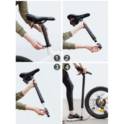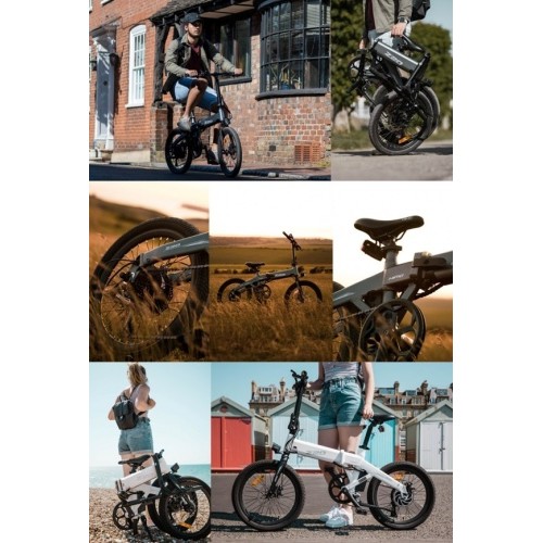 20 colių dydžio pripučiami ratai, dviračio sėdynėje yra integruota pompa (ištraukus sėdynę, ji pavirsta pompa). Atitinka IPX7 standartą. Dviračio pedalai taip pat yra nulenkiami, o tai prisideda prie patogesnio dviračio transportavimo.