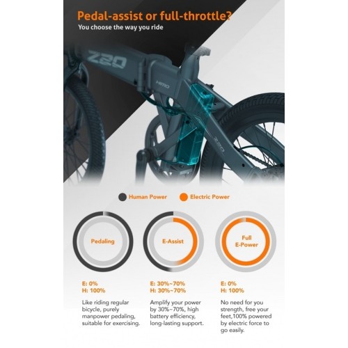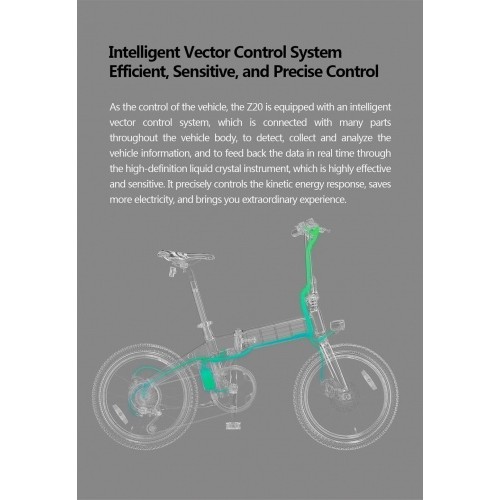 Xiaomi HIMO Z20 – labai šauniai atrodantis, puikių techninių parametrų, tvirto aliuminio rėmo elektrinis dviratis. Sertifikuotas - CE standartas, 3C saugumo sertifikatas. Pilnai sulankstomas dviratis, perlenkiamas perpus, vairas nulenkiamas žemyn, kompaktiškas bei patogus transportuoti automobilio bagažinėje, įsinešti į liftą ar tiesiog atsinešti į biurą. Idealus daiktas gyvenant mieste, važiuojant į darbą be kamčių, tiek keliaujant kelionėse, didesnėje bagažinėje sutalpinsite ir du tokius. Suprojektuotas taip, kad teiktų geriausią vairavimo patirtį. Lengvas valdymas, išbandykite vieną kartą ir niekada nepamiršite. Elektrinis dviratis – smagi, patogi ir ekologiška susisiekimo priemonė.