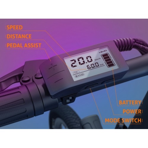 Xiaomi HIMO Z20 turi ryškų ekraną, kuriame pateikiama informacija: greitis (km/h), nuvažiuotas atstumas, baterijos likutis ir važiavimo režimas. Priekyje ir gale turi ryškiai šviečiančius LED žibintus, ergonomiškas vairo rankenas, patogią sėdėti ir smūgius sugeriančią sėdynę. Dviračio viduryje yra integruotas amortizatorius, suteikia dar daugiau komforto ilgesnių kelionių metu.