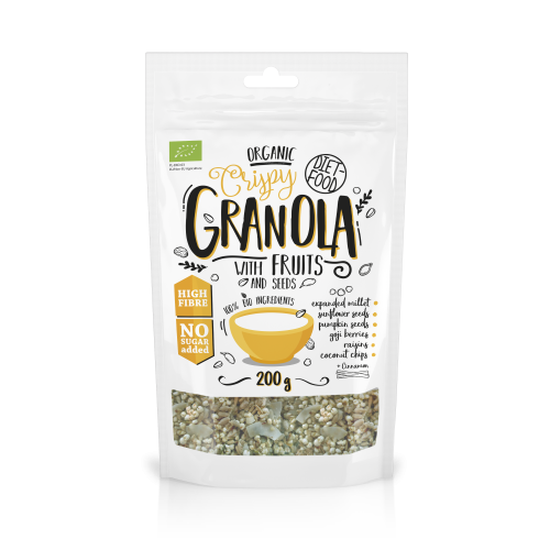 GRANOLA su vaisiais ir sėklomis ekologiški traškūs dribsniai 200g PL-EKO-03