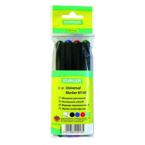 Stanger M140. Rašiklio spalvos: Juoda, Mėlyna, Žalia, Raudona, Antgalio tipas: Taškinis antgalis, Produkto spalva: Juoda, Žalia. Kiekis pakuotėje: 4 vnt, Pakuotės tipas: Lizdinė pakuotė