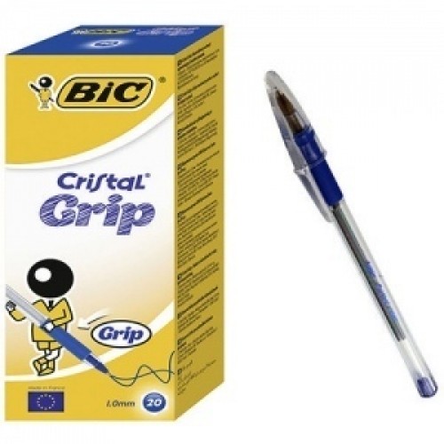 BIC Cristal Grip. Produkto spalva: Mėlyna, Permatomas, Rašiklio spalvos: Mėlyna, Tipas: Tušinukas. Kiekis pakuotėje: 20 vnt