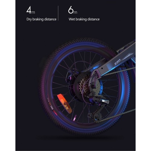 Elektrinis dviratis Xiaomi HIMO Z20 turi puikios kokybės japonišką Shimano 6 pavarų sistemą. Dviračių mėgėjai žino, kad tik aukščiausios kokybės dviračiai gali pasigirti Shimano pavarų sistemomis. Dviratis aprūpintas dviguba stabdymo sistema (priekiniai ir galiniai diskiniai stabdžiai).
