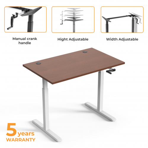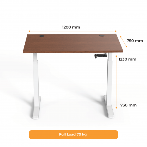 Reguliuojamo aukščio stalas Up Up, baltu rėmu, mechaniškai reguliuojamas aukštis, 2-sekcijų, tamsaus riešuto stalviršis (LMDP) 1200x750mm