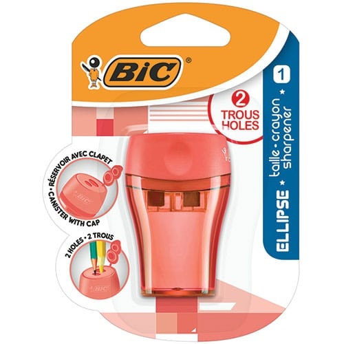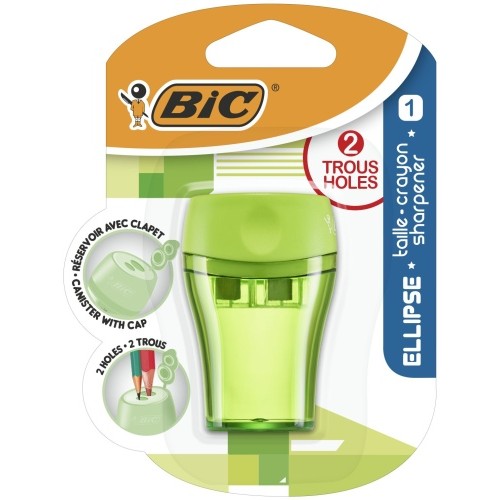 2 skylės, su konteineriu. Tinka standartiniams ir storiems pieštukams. Apsauginis dangtelis saugoja nuo drožlių išbyrėjimo. Įvairių spalvų: mėlyna, žalia, raudona.