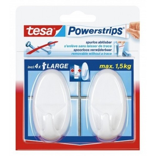 Kabliukai Tesa Power Strips Large Ovale, lipnūs, plastikiniai, balti (2) 2008-101