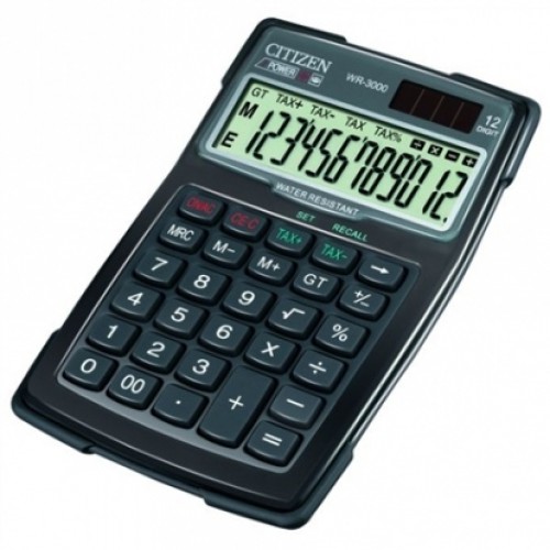 Atsparus vandeniui ir dulkėms skaičiuotuvas. 12 skaitmenų vienos eilutės lenktas ekranas. Dvigubas maitinimo šaltinis. Mokesčių skaičiavimo funkcija. Atliktų veiksmų bendros sumos mygtukas. Dvigubo nulio mygtukas. Automatinio išsijungimo funkcija. Matmenys: 162 x 106 x 38 mm. Svoris: 140 g.