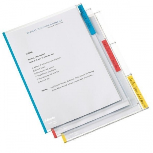 Aplankas L Esselte, A4, 150 mikr., su spalvotais skirtukais (6) 0812-202