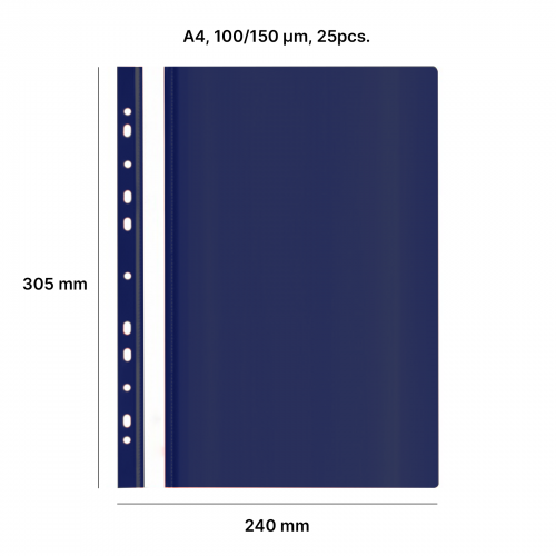 Segtuvelis skaidriu viršeliu ir perforacija AD Class 100/150 Tamsiai melynas 25 vnt./pak