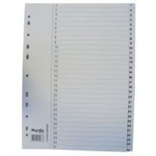 Skiriamieji lapai Nordic, A4, 1-31 skaičiai, kartoniniai 0808-201