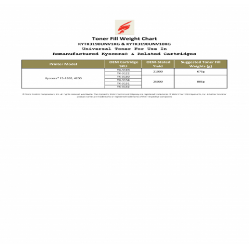 Static Control Tonerio miltukai Kyocera TK 1150/ 1160/ 1170/ 3100/ 3110/ 3130/ 3150
