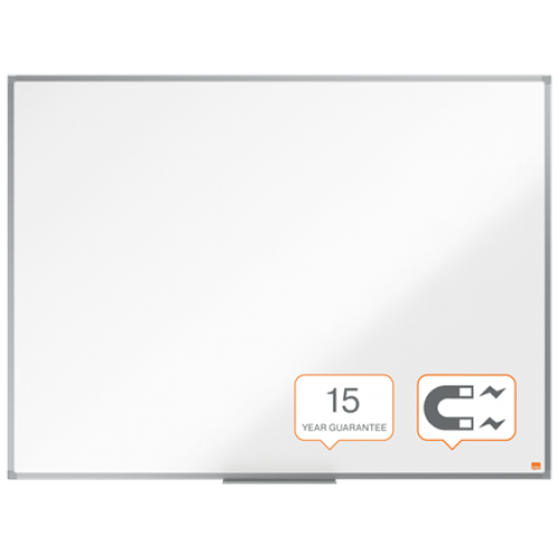 Plieninė balta magnetinė lenta su anoduotu aliuminio rėmu. Erdvus žymeklių padėklas sumontuotas po lenta. Tvirtinimas per kampą. Dažytas plieninės magnetinės lentos paviršius yra geriau nuvalomas. Paviršiui gamintojas suteikia 15 metų garantiją. Dydis: 1200x900mm.