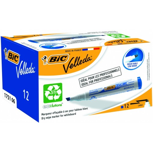 BIC Velleda Whiteboard Marker 1751. Kiekis pakuotėje: 12 vnt, Rašiklio spalvos: Mėlyna, Antgalio tipas: Kalto galiukas