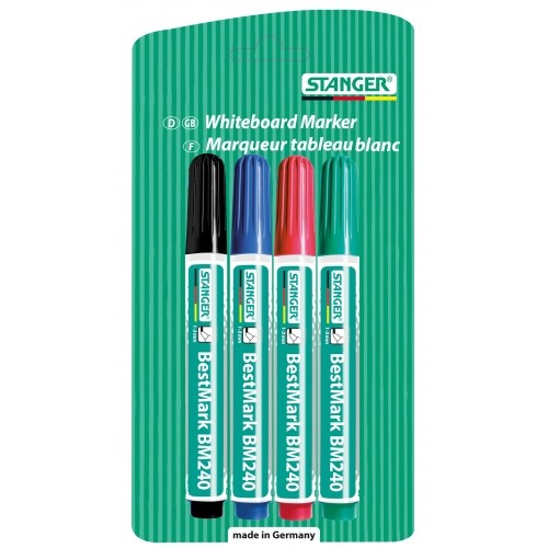 Stanger BM240. Kiekis pakuotėje: 4 vnt, Rašiklio spalvos: Juoda, Mėlyna, Žalia, Raudona, Antgalio tipas: Taškinis antgalis