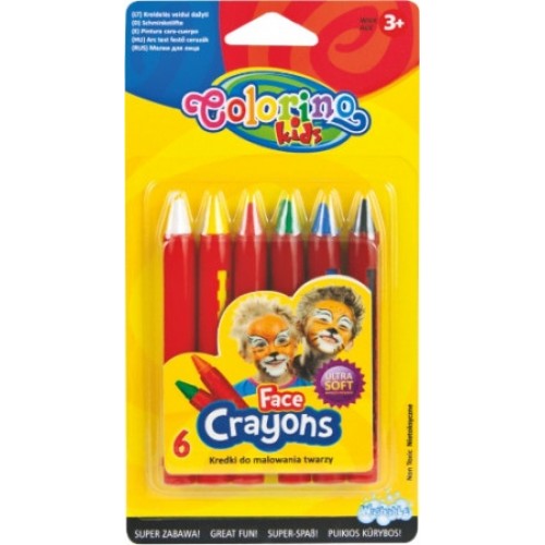 Kreidelės veidui dažyti 6 ryškių spalvų. Ypatingai minkštos, lengvai nuplaunamos, netoksiškos. Idealiai tinka karnavalo vakarėliams, gimtadieniams ar sporto renginiams. Tinka vaikams nuo 3 metų amžiaus.