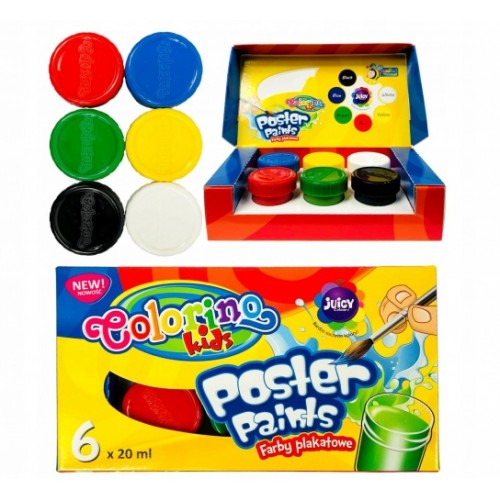 Puikiai dengiantys vandenyje tirpūs 6 spalvų dažus. Dėl aksominės konsistencijos dažai puikiai pasiskirsto ant dažyto paviršiaus. Spalvas galima lengvai maišyti, todėl galima išplėsti turimą spalvų paletę. Tinka piešimui ant įvairių paviršių, tokių kaip popierius, kartonas, medis, keramika. Netoksiškas. Turi reikiamus atestacijas ir sertifikatus.