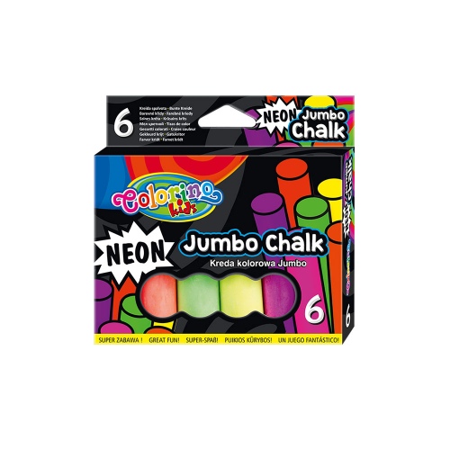 Colorino Jumbo kreida skirta piešti ant lentos, asfalto, popieriaus ir kitų paviršių. 6 ryškios neoninės spalvos.
