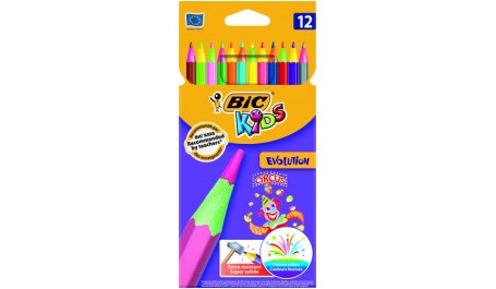 BIC EVOLUTION CIRCUS Pouch 12. Kiekis pakuotėje: 12 vnt, Rašiklio spalvos: Multi spalvos, Rekomenduojama amžiaus grupė: Vaikiškas. Pakuotės tipas: Lizdinė pakuotė