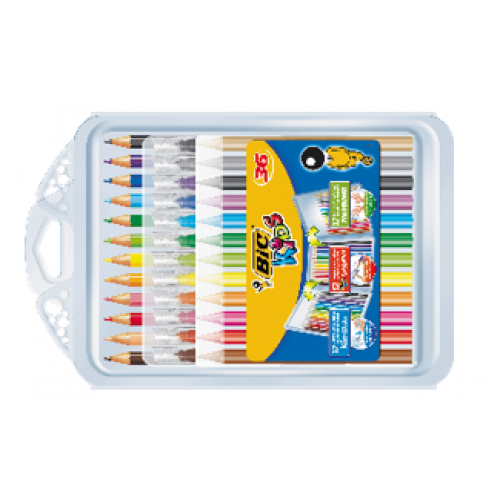 BIC 8877011. Kiekis pakuotėje: 36 vnt, Rašiklio spalvos: Multi spalvos, Rekomenduojama amžiaus grupė: Vaikiškas. Pakuotės tipas: Plastikinis dėklas