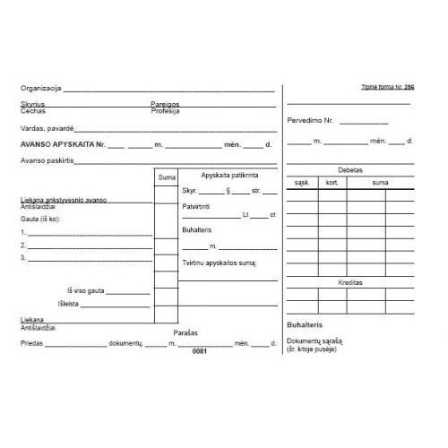 Avanso apyskaita, A5 (100) 0720-035