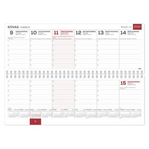Horizontalus stalo kalendorius Memo Card Kaunas 2020m. laminuoto kartono viršeliu