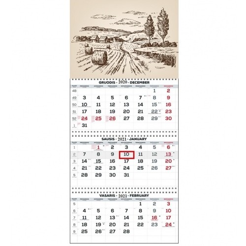 Sieninis kabinamas kalendorius trijų dalių TRIO 30x66cm.