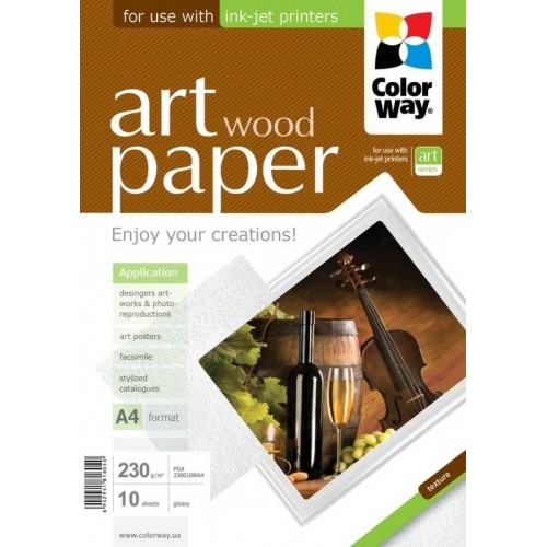 Dekoratyvinis popierius ColorWay mediena, A4, 230g, blizgus (10) 0710-614