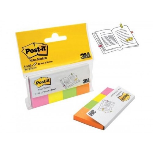 Indeksai 3M, Post-it, 20x38mm, spalvoti, popieriniai (4x50) 0718-001