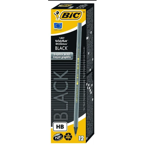 BIC Ecolutions Evolution Black. Kiekis pakuotėje: 12 vnt, Medžiaga: Plastikas, Produkto spalva: Juoda, Sidabras. Ilgis: 17,5 cm
