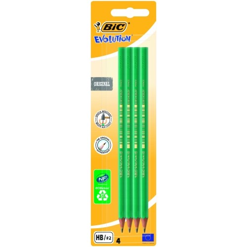 BIC Evolution. Kietumas: HB, Produkto spalva: Žalia, Forma: Šešiakampiai. Pakuotės tipas: Lizdinė pakuotė. Kiekis pakuotėje: 4 vnt