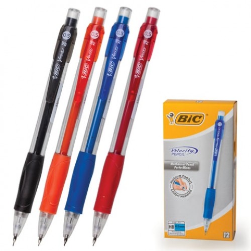 BIC Velocity. Produkto spalva: Multi spalvos, Rašiklio spalvos: Juoda, Mėlyna, Oranžinė, Raudona, Kietumas: 2HB. Kiekis pakuotėje: 12 vnt