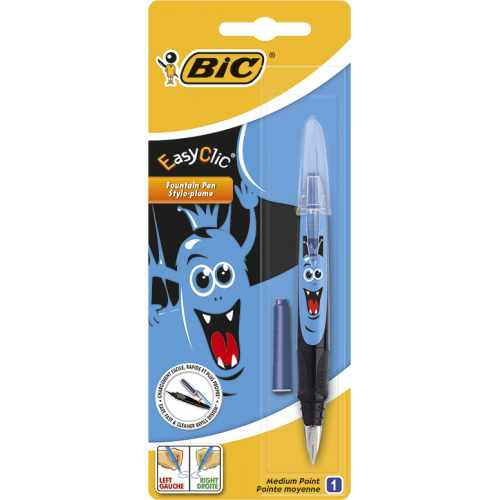 BIC EasyClic. Produkto spalva: Juoda, Mėlyna, Rašalo pripildymo sistema: Užpildymas kapsulėmis, Rašiklio spalvos: Mėlyna. Pakuotės tipas: Lizdinė pakuotė. Kiekis pakuotėje: 1 vnt
