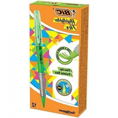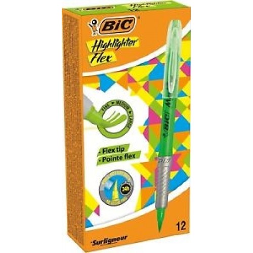 BIC Highlighter Flex. Kiekis pakuotėje: 12 vnt, Rašiklio spalvos: Žalia, Antgalio tipas: Storas antgalis. Pakuotės tipas: „Box“