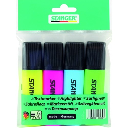 Stanger 180009000. Kiekis pakuotėje: 4 vnt, Rašiklio spalvos: Mėlyna, Žalia, Rožinė, Geltona, Produkto spalva: Multi spalvos. Pakuotės tipas: Lizdinė pakuotė