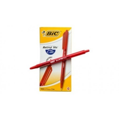 BIC Round Stic Clic. Produkto spalva: Raudona, Rašiklio spalvos: Raudona, Tipas: Paspaudžiamas tušinukas. Kiekis pakuotėje: 20 vnt, Pakuotės tipas: „Box“